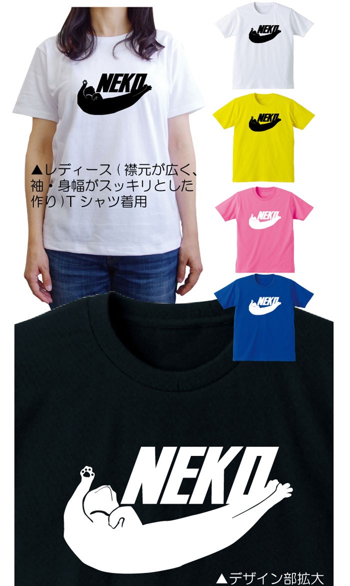 猫好きのためのスポーティロゴTシャツです。ネコシルエットは何だか見たことのスポーツブランドのパロディになってます。猫カフェのみんなでお揃いでどうぞ!Tシャツのカラーは8色から選べるようになりました!サイズはキッズサイズから大人用までございます!親子ペアで着ちゃおう!