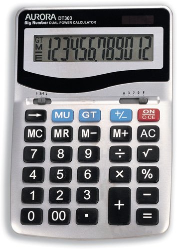 -. Title : Aurora DT303 Desktop Calculator with Large Display and Keys