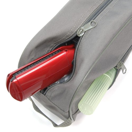 -. Binding : Misc. -. Brand : Flying Circle Bags -. Feature : Versatile and inexpensive / Roomy, open interior easily accommodates all your toiletries / Side zipper pocket secures smaller items / Big enough for full size toiletry bottles / Will hold a curling iron, flat iron, or travel size hair dryer -. Label : Flying Circle Bags -. Manufacturer : Flying Circle Bags -. PackageQuantity : 1 -. ProductGroup : Sports -. ProductTypeName : SPORTING_GOODS -. Publisher : Flying Circle Bags -. Size : 13" w x 5" d x 7" h -. Studio : Flying Circle Bags -. Title : Large Toiletry Bag - 930
