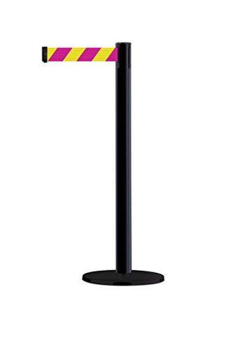 Tensabarrier 889U-33-33-STD-NO-D5X-C Black Post, 2" Wide, 7' 6" Length "Chevron Magenta & Yellow" Belt, 90" Length, Steel