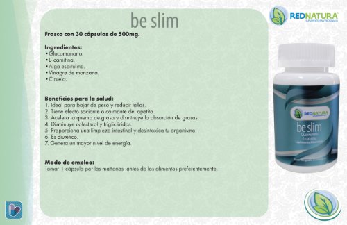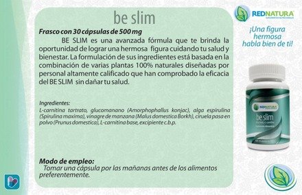 -. Binding : Health and Beauty -. Brand : Be Slim -. EAN : 7502255790406 -. Feature : Helps support healthy weight loss / Helps alleviate unnecessary hunger / Helps improve water intake / Lose weight naturally when combined with a good diet and exercise! / The Original from Mexico -. IsAdultProduct : 0 -. Label : Red Natura -. LegalDisclaimer : REDNATURA USA DISTRIBUTOR:WARNING DO NOT BUY IF IT UNDER THE COMPANY PRICE IT MIGHT BE AN IMMITATIONWE NEED DISTRIBUTORS!! -. Manufacturer : Red Natura -. PackageQuantity : 60 -. ProductGroup : Health and Beauty -. ProductTypeName : HEALTH_PERSONAL_CARE -. Publisher : Red Natura -. Studio : Red Natura -. Title : Belim Weight Loss Supplement Capsules - Red Natura Mexican Version - 30 Day Supply