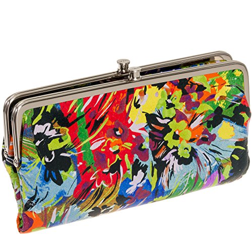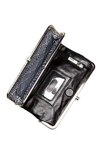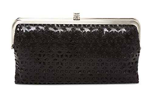 Modernized, laser-cut leather in a two-sided design is perfectly proportioned for traveling light. Clutch opens at the center to reveal card slots, an ID window and a full-length zip pocket. Frame at one end has openings for more cards, while the frame at the other conceals a zip pocket. - Dual framed tops with press-lock closure - Bi-fold construction with magnetic closure - Exterior features laser-cut construction - Interior features 1 zip pocket, 1 clear ID slot, and 3 card slots and 2 compartments - Approx. 4.5" H x 8.5" W x 1.5" D - Imported -Leather exterior, polyester lining