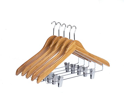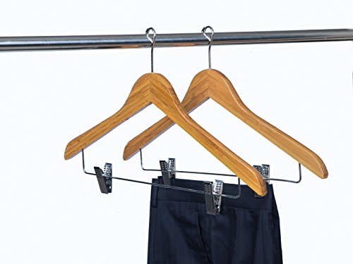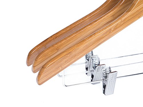-. Feature : Bamboo wood hangers, perfect for hotel suit, coat, jacket, underwear etc. / Small poslished hook special for hotel room / Two adjustable metal clips have soft felt lining to safely grip even delicate garment / Package Includes: 100pcs bamboo Hanger, Color: Amber / Perfect design keep your suit and pants