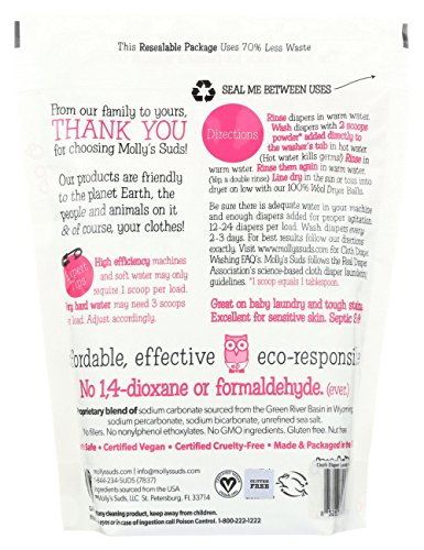 Molly's Suds Cloth Diaper Laundry Powder 32 loads- Perfect for Baby Laundry, All Natural, Free of Parabens and Harsh Chemicals