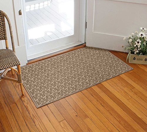 Ideal for areas with heavy foot traffic, the Bungalow Flooring Waterhog Standard Doormat protects your floors from water, mud, sand, snow and other elements. Its ribbed leaf design and exclusive "Water Dam" raised border traps dirt and absorbs moisture from shoes and pets to keep grime contained and your floors clean. Made from 24-ounce anti-static polypropylene, this 2-foot by 3-foot durable mat dries quickly and will not mildew, mold or rot. Featuring a commercial-grade, molded construction that will not crush or break down over time, the Waterhog Standard Doormat is highly resistant to extreme elements and suitable for indoor or outdoor use. Features a non-skid SBR rubber backing made with 20% recycled rubber that is environmentally friendly and certified slip resistant by the National Floor Safety Institute. For maintenance, simply hose clean or spot clean as needed and air dry. Made in the USA.