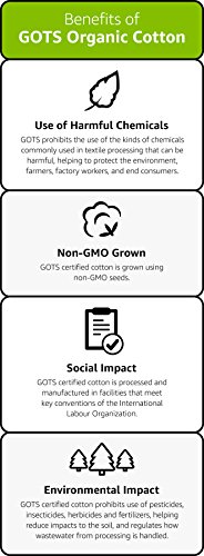 Studio : Pinzon Publisher : Pinzon Binding : Baby Product Product Description An Amazon Brand. Fitted crib sheet adds cozy comfort to any nursery; measures 28 by 52 by 9 inches; fits standard crib mattresses up to 6 inches thick. Made from 100% organic cotton; organic cotton is grown from non-GMO seeds and prohibits the use of the kinds of chemicals commonly used in textile processing that can be harmful, helping to protect the environment, farmers, factory workers, and end consumers. GOTS certified: GOTS is recognized as the world’s leading textile processing standard for textiles made from organic fibers. This percale is lightweight, breathable, and has been brushed to a peach-like finish for a notably softer hand feel. Solid color for easy coordinating with surrounding decor. Arrives neatly packaged in an organic cotton fabric bag for easy, beautiful gifting. Machine wash and tumble dry on low. 0