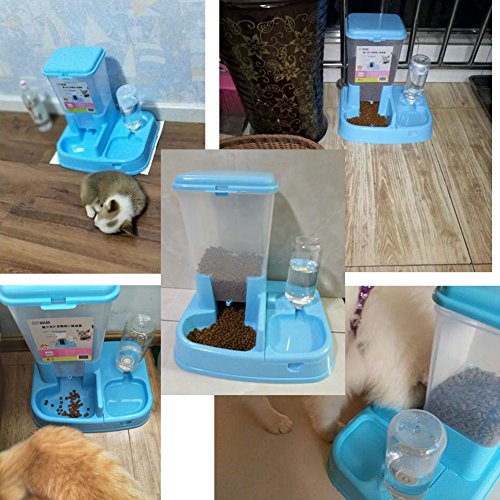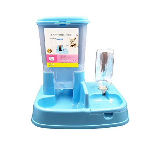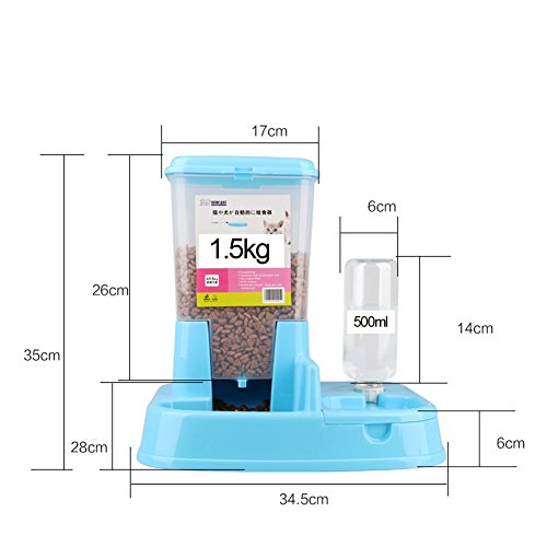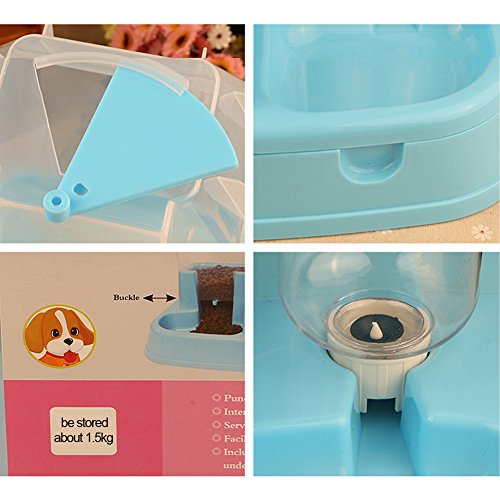 Studio : PETHOUZZ Publisher : PETHOUZZ Binding : Misc. Product Description Feartures: Provides endless clear fresh water. Bowl is large and detachable for easy cleaning. Anti-spill check valve helps avoid overflowing while refilling. Material:resin Size approx: as second picture. Color: as picture Package includes: 1 x Food Dish Bowl 1 x Water bottle Working principle This product works according to the physical gravity, and the food will fall down because of gravity until the food in the basin is filled up to block the exit.When your pet eats the food in the bowl, the food in the granary will continue to fall. Therefore, the food in the bowl is adequate. The food can be stored around 1.5 kilograms, so it doesn't matter if you go out for a few days. Put the bottle upside down and the water in the bottle will flow into the water bowl until the water in the bottle is at the same level as the water in the bowl. When a pet drinks some of the water from a water bowl, the water in the water bottle automatically runs off again. So as long as there is water in the bottle, the water in the water bowl is always full.