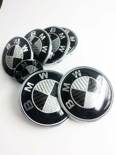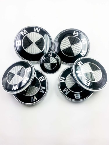 7 Pcs Real Carbon Fiber Black/Silver Emblem Logo For BMW 82mm/82mm