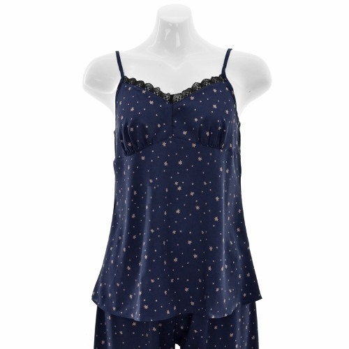 폴리 별 프린트 파자마로 캐미솔, 팬츠, 짧은 가운로 구성된 3PCS입니다~