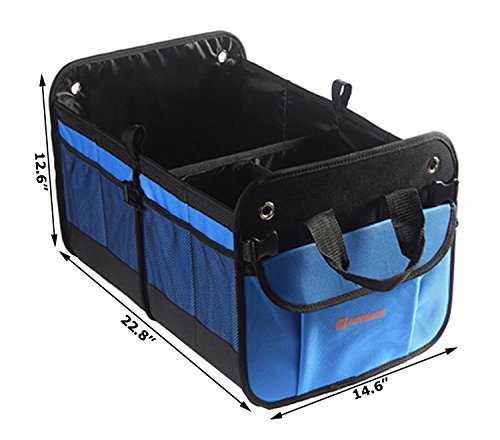 - Each end features a sturdy fabric handle that will help you transport the organizer basket as needed, and you can simply pull up the bottom panel reinforcements and fold up the whole storage box into a flat square when empty for easy storage - Ready to cut clutter in your trunk and keep everything in there easy to find? Add this storage solution to your trunk today.