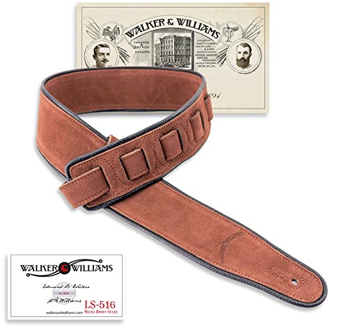 -. Title : Walker & Williams LS-516 Cappuccino Brown Premium Suede Guitar Strap with Black Piping