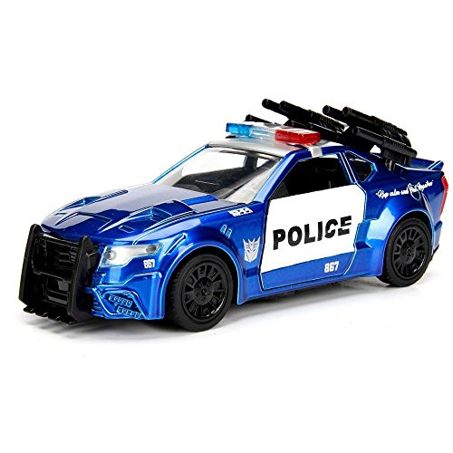 * Model : TRANSFORMERS 5 BARRICADE CUSTOM POLICE CAR * Color: Blue * Scale: 1:32 * Manufacturer: Jada Toys * Material: Diecast metal with some plastic parts *Rubber Tires & Detailed Interior