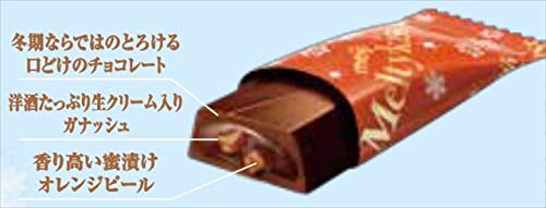 原材料:砂糖、カカオマス、植物油脂、全粉乳、蜜漬けオレンジピール、ココアバター、洋酒(ブランデー51%)、クリーム、ココアパウダー、ソルビトール、乳化剤、香料、酸化防止剤(V.E、ローズマリー抽出物、チャ抽出物)、酸味料、(一部に乳成分・オレンジ・大豆を含む)