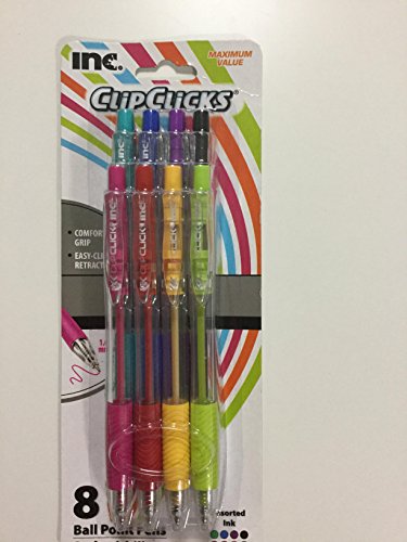 -. Title : Clipclicks 8 ballpoint pens assorted ink colors