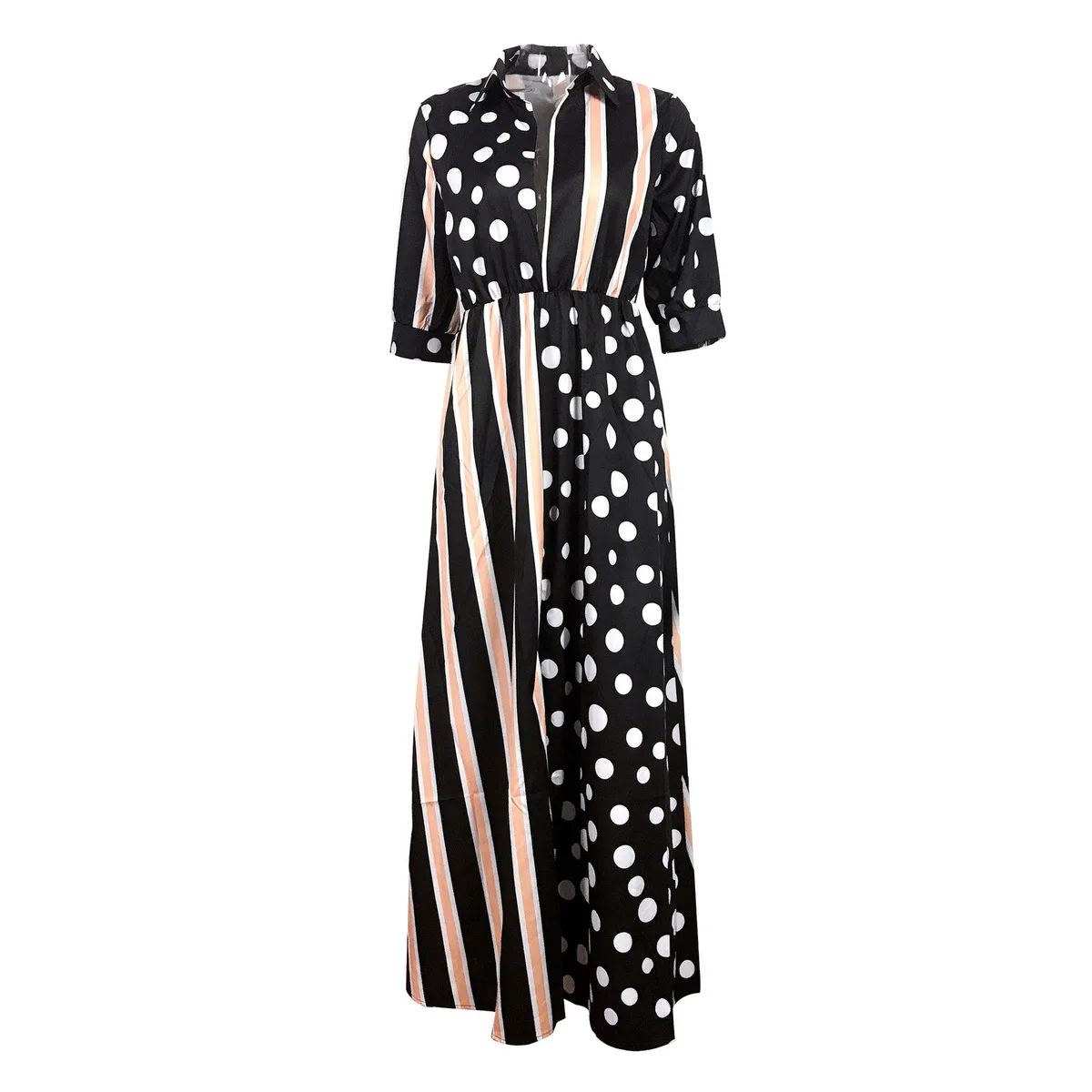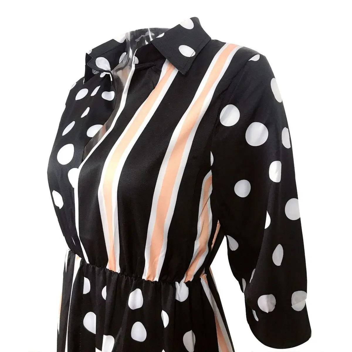 Color:dot striped and white print