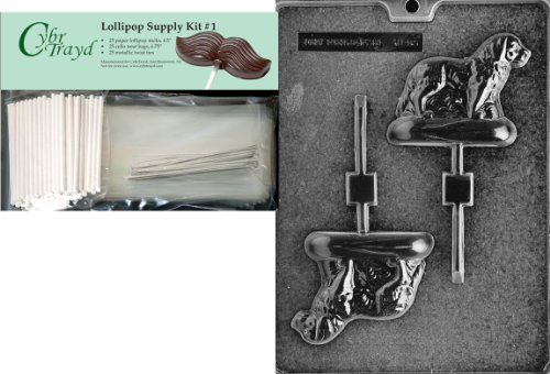 Cybrtrayd "Newfoundland Lolly" Dog Chocolate Candy Mold with Lollipop Supply Bundle of 25 Lollipop Sticks, 25 Cello Bags, 25 Silver Twist Ties and Instructions