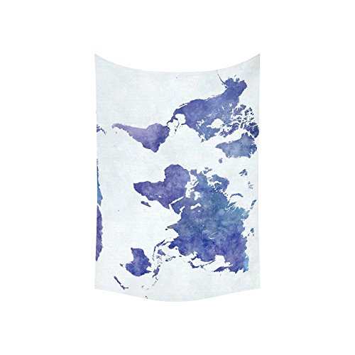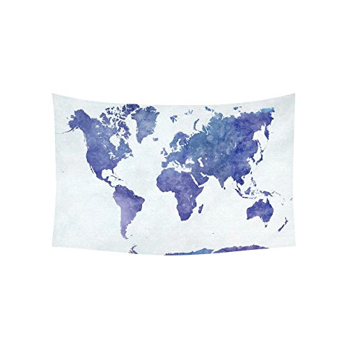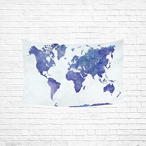 InterestPrint Abstract Wall Art Home Decor, World Map in Watercolor Purple Tapestry Wall Hanging Art Sets 60 X 40 Inches