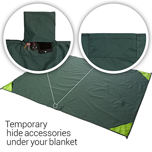 TOP NOTCH STORAGE AND ORGANIZATION: Enjoy the freedom of keeping some of your smaller accessories and valuables in the built-in pocket. The built-in pocket can be folded and easily hidden underneath the top surface of the blanket. This extra level of personal organization takes the worry and stress away from a day of fun when holding onto your personal items and makes this blanket truly unique!