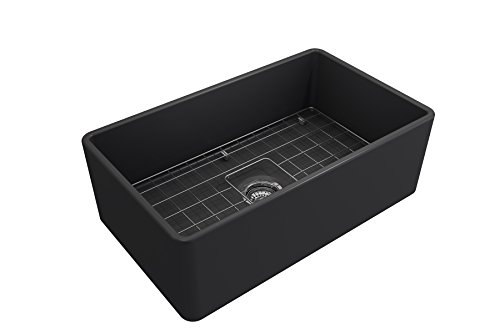 Classico Farmhouse Apron Front Fireclay 30 in. Single Bowl Kitchen Sink with Protective Bottom Grid and Strainer in M.Dark Gray
