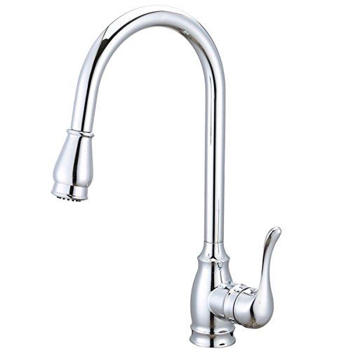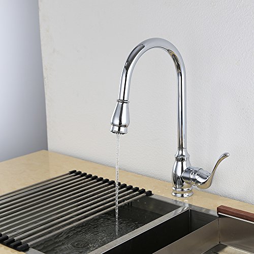 Kitchen Sink Faucet Fixtures Contemporary Design Single Handle Solid Brass Pull Down Mixer Taps Chrome Polished