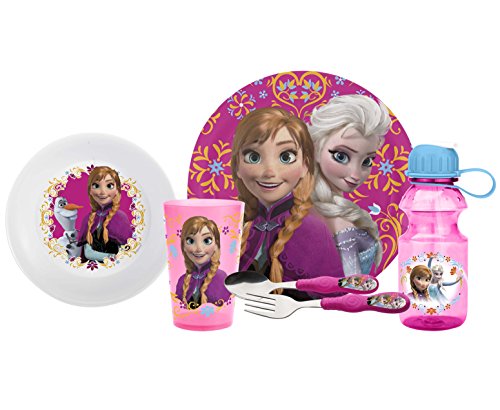 Zak! Designs Mealtime Set, Plate, Bowl, Tumbler, Water Bottle, Fork & Spoon with Elsa & Anna from Frozen, BPA-Free, 6 Piece Set