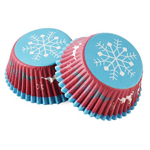 Transfertex 100pcs Christmas Baking Cups Standard Cupcake Muffin Liners Premium Disposable for Special Holiday Snowflake Design