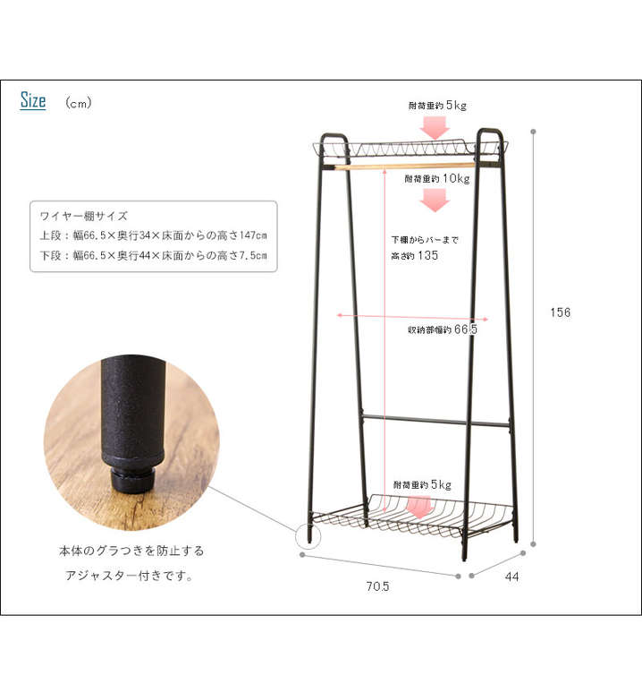 ●耐荷重:ハンガーバー約10kg、棚板約5kg