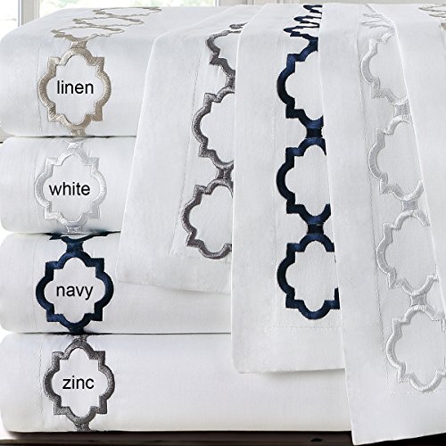 Echelon Home Hotel Quatrefoil Embroidery Shams, Euro, Navy