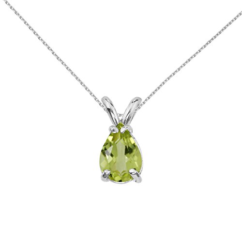 -. Title : 14k White Gold Pear Shaped Peridot Pendant with 18" Chain
