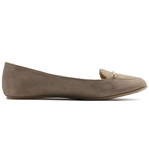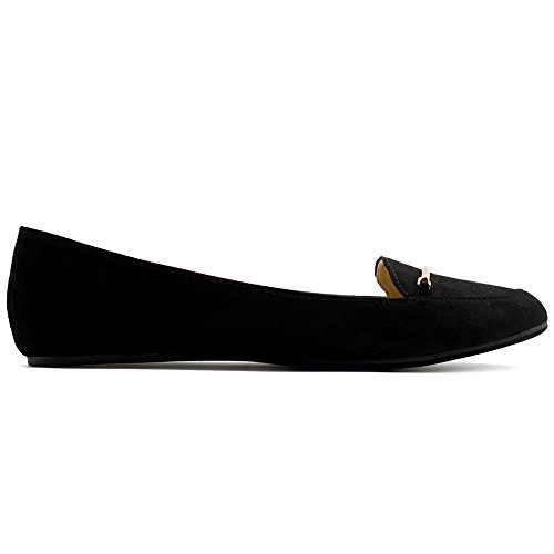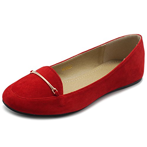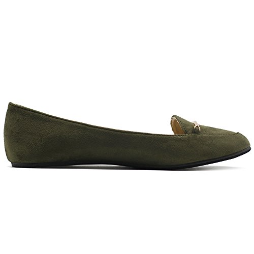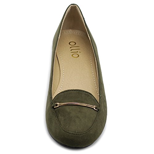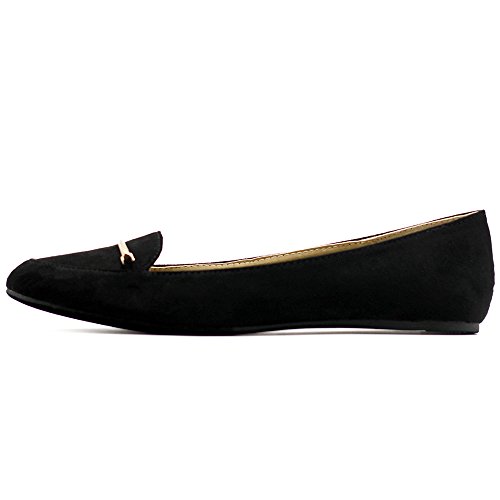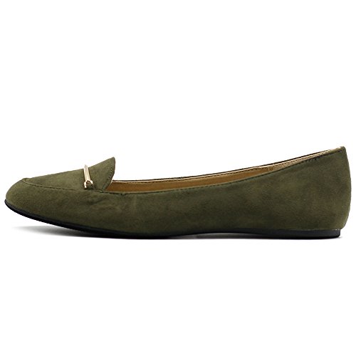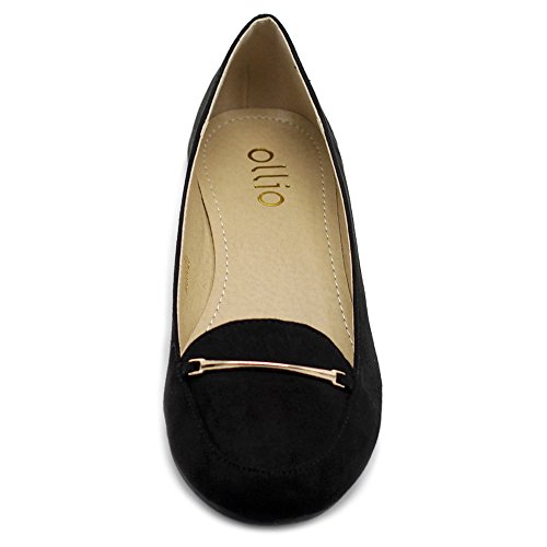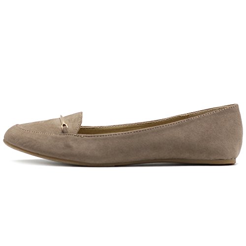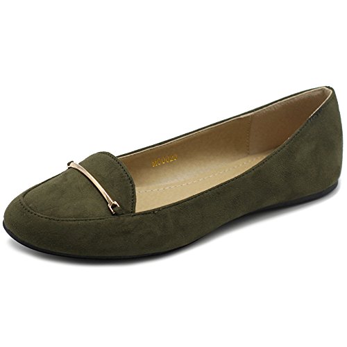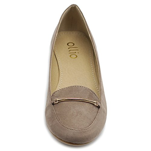 Ollio Women's Shoe Light Comfort Faux Suede Gold Band Ballet Flats