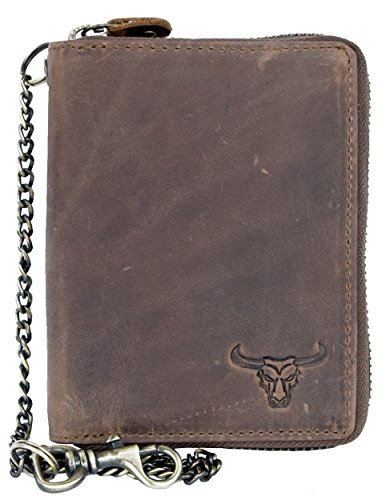 -. Binding : Misc. -. Brand : FLW -. Color : Tan -. Department : mens -. EAN : 8595620002715 -. Feature : Men's zip-around natural strong genuine leather wallet with bull head / Dimensions 3.9 x 5.1 x 1 in (10 x 13 x 2.5 cm) + 11.8 in long metal chain (30 cm) / This is a large wallet, check dimensions. / Entire wallet closes around by quality metal zipper. / Vertical trifold design -. PackageQuantity : 1 -. ProductGroup : Apparel -. ProductTypeName : ABIS_LAGE -. Size : One Size -. Title : Large Genuine Leather Wallet with Metal Zipper Around (zipper around) with Bull Head and Metal Chain
