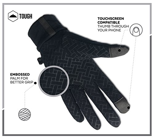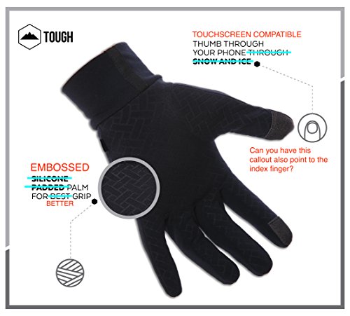 Tough Outdoors Touch Screen Gloves - Thermal Glove Liners Designed for Running, Skiing, Snowboarding, Cycling & Texting - 90% Nylon 10% Spandex Reinforced Blend - Fits Men & Women