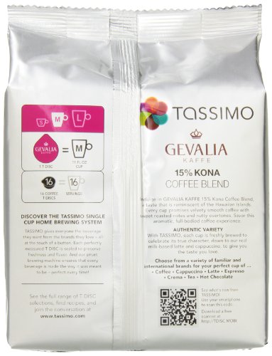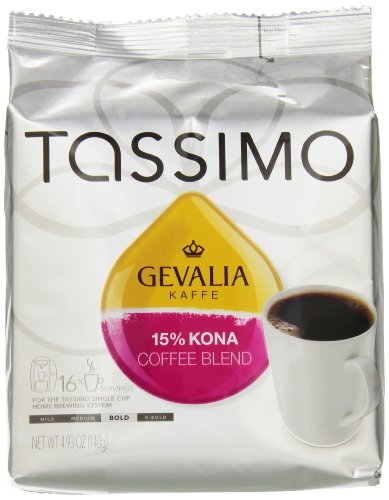 Gevalia 15% Kona Blend Coffee, Bold Roast, T-Discs for Tassimo Brewing Systems, 16 Count