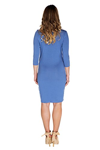 Maternity dress with breastfeeding solution. Drop Waist with fabric loosely falling at the front, close-fitting at hips