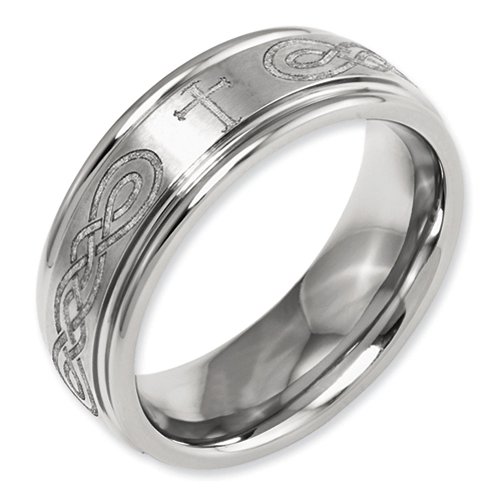 -. Title : 8mm Ridged Edge Laser Engraved Christian Cross w/ Celtic Weave Titanium Wedding Band