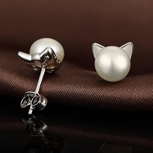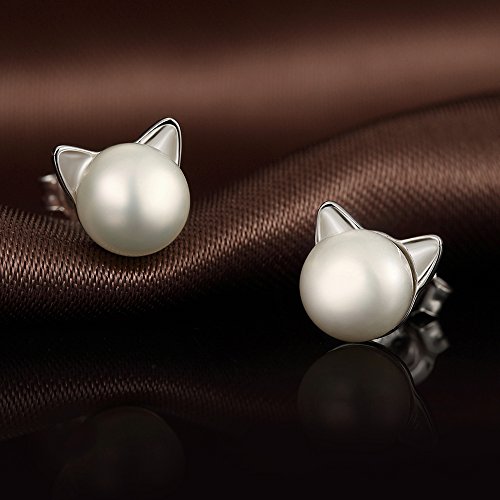 - Pearl Cat Earrings Material : These fashion cat earrings post earrings made of 925 Sterling silver plated white gold. Without any harmful ingredients, it’s nickel-free, lead-free, cadmium-free.