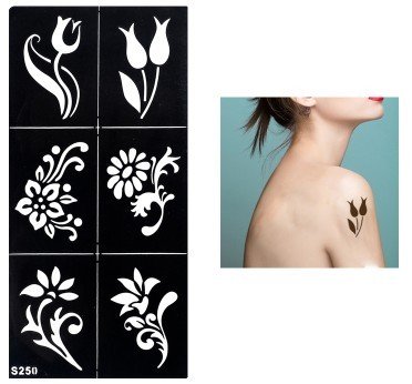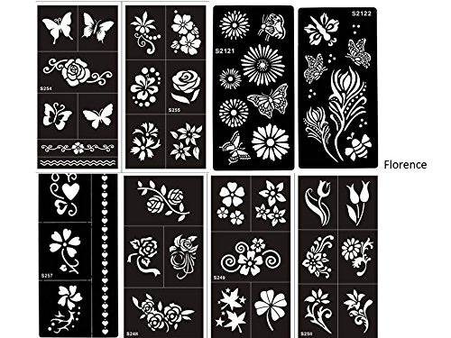 Tattoo Stencil Butterfly and Flowers Template Set of 8 Sheet Florence