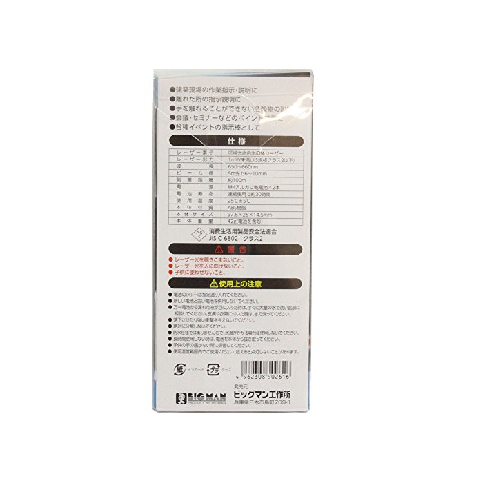 원본상품명:Bigman(ビッグマン) 量レザポインタ WILP-R1 消費生活安全法PSCマク認製品
