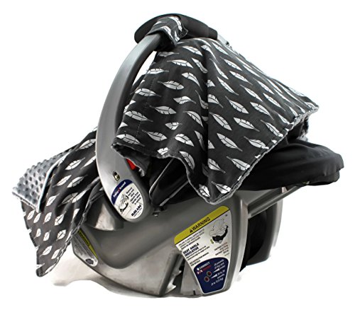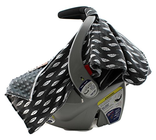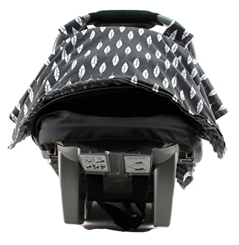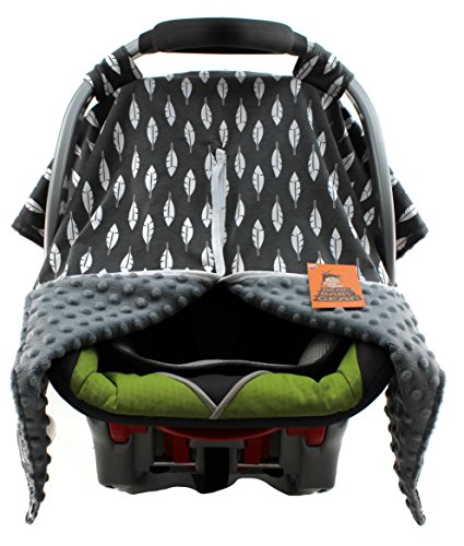 Dear Baby Gear Carseat Canopy, Feathers on Grey, Grey Minky