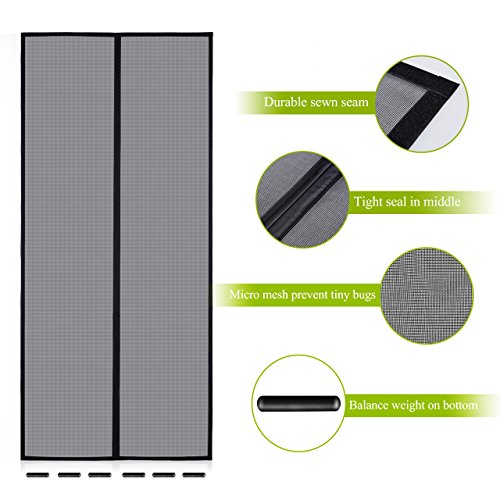 Sewed in 26 strong magnetic points (6 sets of magnetic seal and 7 sets of magnet) make the screen door close much quicker and no more slamming. Natural air flow in to the area while keeping the pesky bugs getting in