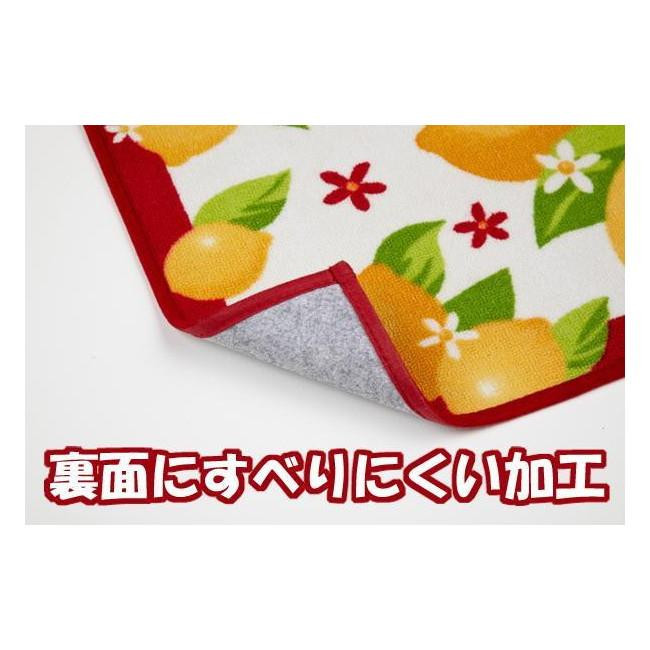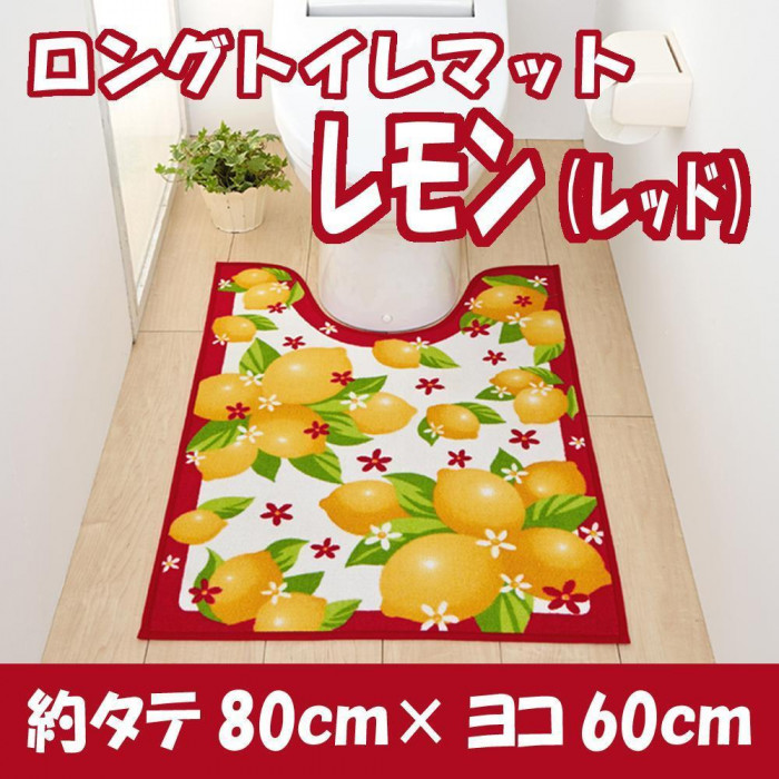 フレッシュなレモン柄でトイレをさわやかに。手前に長いサイズ。裏面すべりにくい加工。