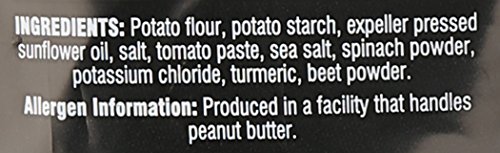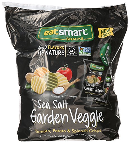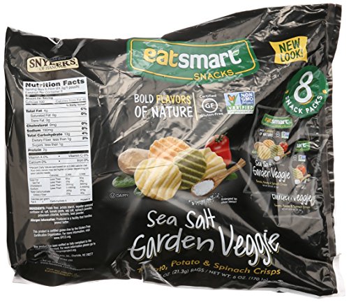 -. Binding : Grocery -. Brand : Snyder's of Hanover -. EAN : 0077975088142 -. Feature : Delicious blend of potato, tomato, and spinach chips made with 100% expeller pressed sunflower oil / Certified Gluten free by gig of north America / Verified as containing no GMO's by the Non-GMO Project / Perfect at home or on the go -. Label : Snyders of Hanover -. Manufacturer : Snyders of Hanover -. PackageQuantity : 1 -. ProductGroup : Pantry -. ProductTypeName : GROCERY -. Publisher : Snyders of Hanover -. Studio : Snyders of Hanover -. Title : Snyder's of Hanover Eatsmart Natural 100 Calorie Veggie Crisp Multisack, 6 Ounce -. UPC : 077975088142