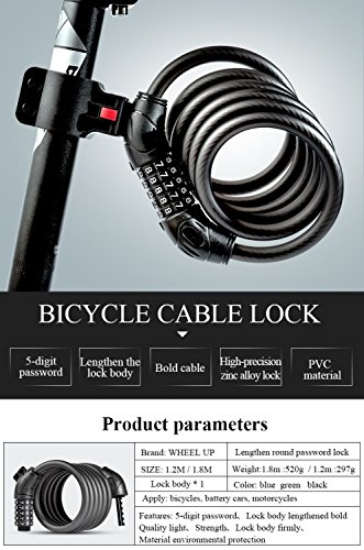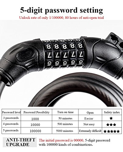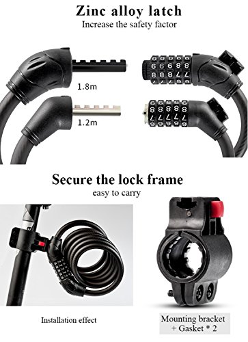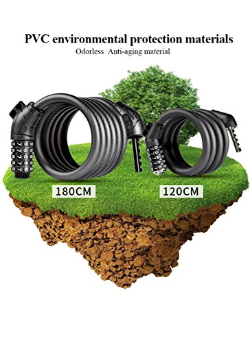 West Biking Bike Lock Cable, 6-Feet Bike Cable Self Coiling Resettable Combination Cable Bike Locks with Mounting Bracket- 6 Feet x 1/2-inch