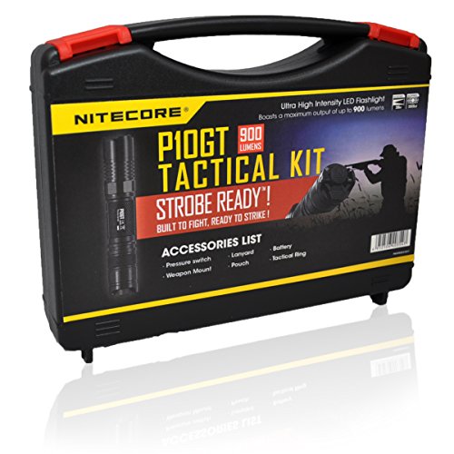 Nitecore P10GT 900 Lumens Rifle Mountable Premium LED Tactical Flashlight Kit with Lumen Tactical Picatinny Rail Mount and Strobe Ready Pressure Switch