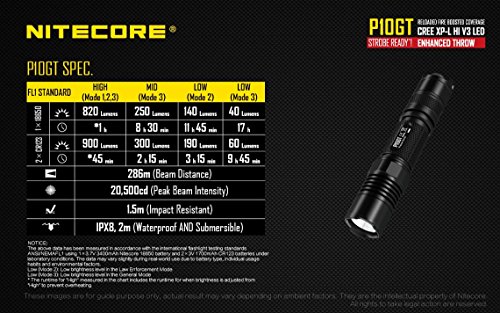 - ENHANCED THROW - Upgraded for 2017, the P10GT (Grand Throw) uses a Cree XP-L HI V3 LED to throw up to 900 lumens an impressive 312 yards - 100 lumens and over 100 yards more than the P10.
