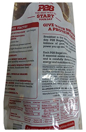-. Binding : Grocery -. Brand : P4 -. Color : Black -. EAN : 0738416003277 -. Feature : Kept Frozen until shipped for quality and freshness. Any bagels that will not be used should be immediately put into the freezer upon receipt. -. IsAdultProduct : 0 -. Label : P28 -. Manufacturer : P28 -. MPN : p28-protein-begals -. PackageQuantity : 1 -. PartNumber : p28-protein-begals -. ProductGroup : Grocery -. ProductTypeName : GROCERY -. Publisher : P28 -. Studio : P28 -. Title : P28 High Protein Bagel, 100% Natural, 6 bagels -. UPC : 738416003277