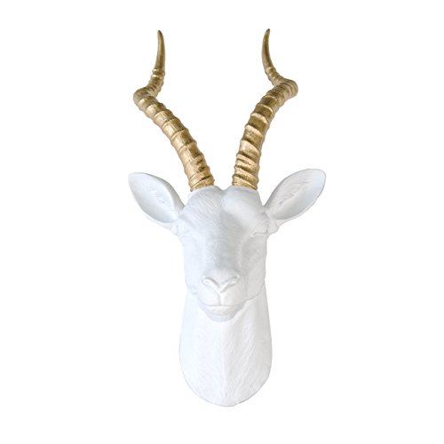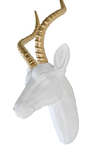 Near and Deer Antelope Head Wall Mount, Large, White/Gold