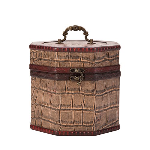 -. Title : Vintage Style Crocodile Pattern Wooden Octagon Jewelry Treasure Box Storage Organizer Trinket Keepsake Chest Set of 2