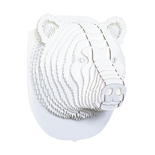 Cardboard Safari Recycled Cardboard Animal Taxidermy Bear Trophy Head, Stewart White Small