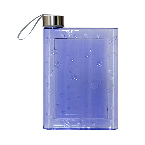- SLEEK DESIGN: This 8.5"x5.5"x1.5" blue clear water bottle comes in a refreshing snowflake design with smooth, curved edges and a convenient, spill-free cap with handy strap.